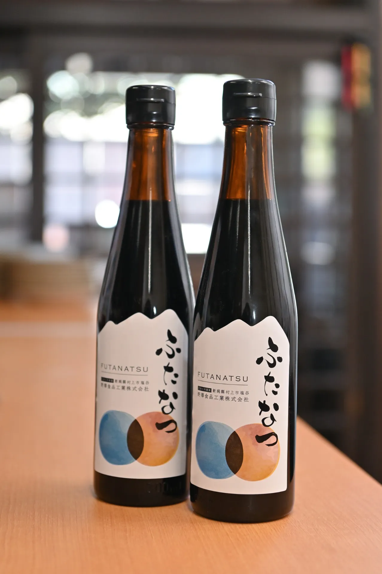 醬油らーめんに使われている醬油は新潟の北に位置する村上市塩谷地区、野澤食品工業「ふたなつ」を使用